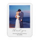 Wedding thank you magnet cards with a photo of the couple and a simple yet elegant design. Personalise it with their names and the wedding date or a custom message for the guests.