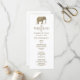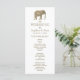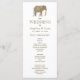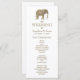 Simple, elegant, minimal white wedding program with modern calligraphy script and gold foil elephant silhouette monogram - with initials at the top.