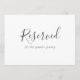 A simple reserved sign for weddings or other events, this flat card has "Reserved" in an attractive handwritten script font with smaller text indicating for whom the seat or table is reserved. You can personalise this card as you wish. The text appears on both the front and back of the card.