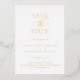 This real gold foil, wedding save the date card will wow your guests with its super elegant, luxury design. This simple, minimalist card features a calligraphy script font with swirling flourishes combined with a classic serif font to add a vintage flair. Created as part of my Jane wedding collection. Be sure to browse the other items in this set to create a chic, coordinated look for your wedding celebration. To add text or change positioning or to change fonts or font colours, please click “Personalise” and "Edit using design tool". If you need additional help adjusting this template, take advantage of Zazzle's free service at https://www.zazzle.com/live or contact me through Zazzle's messaging system. Please note, I create the designs, but all printing and shipping is done by Zazzle at its production facilities, so if there is any issue with your order, please contact their customer support at 1-888-892-9953 or https://www.zazzle.com/about/ask.