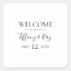 This simple elegant wedding welcome square sticker is perfect for your modern minimalist black and white wedding. The design features minimal contemporary font accompanied by formal calligraphy. Keep it as is, or choose to personalise it with your own artwork or photos!