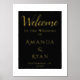 Simple Elegant Black Welcome Script Wedding Gold Foil Print. Simple design with trendy script in gold foil on a black background. Elegant wedding welcome sign. Personalize all the text, bride and groom names and the wedding date.