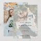 Modern black and white wedding invitation with two engagement photos and a chic calligraphy script.