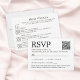 Simple elegant white wedding RSVP card with full menu options in the back. Let your guests select 1 starter, 1 main course, and 1 dessert as well as how many kid's menus they need with these personalizable response cards. This design is for up to 3 adult guests and 3 meal options, for more or fewer choices please check out the variations in the collection or contact me.