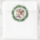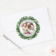 Simple Elegant Wreath Christmas Photo Family Name Classic Round Sticker