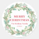 Elegant Christmas sticker featuring "Merry Christmas" along with your family name and year in red surrounded by a greenery wreath. These holiday stickers make great envelope seals for your Christmas cards or as gift tags.