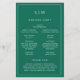 Simple Wedding Program featuring a modern yet elegant design with your two letter monogram at the top and your details surrounded by a thin border. All text is in white over a jewel tone emerald green background and may be changed in the design editing tool. The front has your order of ceremony and the back has your wedding party and thank you message. A chic and stylish design that is great for a minimalist couple. These cheap wedding programs are printed on sheets of paper for a budget friendly option.