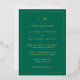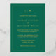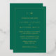 Simple Wedding Invitation featuring a modern yet elegant design with your two letter monogram at the top and your details surrounded by a thin border. This design is printed with real gold foil over a jewel tone emerald green background. A chic and stylish design that is great for a minimalist couple.