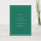 Simple folded wedding program featuring a modern yet elegant design. The cover has your two initial monogram along with your wedding details in white over a jewel tone emerald green background. The inside has your wedding party on the left side and your order of ceremony on the right side. The backside has your personal thank you message. All design element colours may be changed in the design editing tool. A chic and stylish design that is great for a minimalist couple.