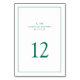 Simple wedding table number featuring an elegant and timeless design with your two letter monogram, names, date and table number surrounded a thin border. All design elements are in a jewel tone emerald green over a white background and may be changed to any colour you wish in the design editing tool. A clean and classic design perfect for a couple who wants a traditional style table number with a modern touch. Add each table number to your cart individually.