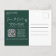 Simple Emerald Green Save the Date QR Code Photo Postcard