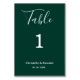 Modern emerald green background with white script with the word "table" written in it appears on fashionable wedding table number cards. A taupe background or any colour of your choosing is used in the design. The pattern is repeated on the back. Include your name, wedding date, and table number when ordering the table cards. Individually add each number to your cart, then proceed to the checkout when done.