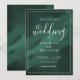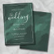 This elegant and simple wedding invitation features a beautiful blend of forest green and emerald green watercolor background with white fonts. The design allows for customisation, as the watercolor formation sits on top of the coloured background, making it easy to adjust the colours as needed. At the top, "the wedding of" is highlighted in bold script calligraphy, paired with a classic serif font and script accents for the remaining text. A thin white line frame around the edge adds a sophisticated touch. This modern and minimalist invitation is perfect for autumn, fall, winter, and even spring weddings. Its chic, understated elegance ensures it works with a variety of wedding themes, adding a refined touch to your special day. Elegant Modern Watercolor Green Wedding Invitation. Available as a printed invitation, or as a downloadable digital invite that you can send in e-mail or have printed locally!