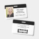Personalise these vertical employee ID badges with an employee photo and name, along with multiple custom text fields along with the adding your logo. The title or role appears along the bottom in bold black lettering for easy identification. Customise with your barcode and return information or other details in the back.