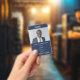 Simple Employee Photo ID Name Logo Navy Blue Badge