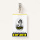 This simple badge design features a customisable staff or employee portrait image, along with a personalised name. The back features a customisable company logo. Badges like these could perhaps be used to identify the staff or employees of a business.