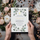 This minimalist and trendy Baptism or Christening invitation features simple green watercolor eucalyptus leaves and foliage with an elegant, gold foil cross.