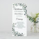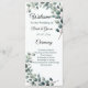 Celebrate your special day with this elegant eucalyptus wedding program. Featuring a simple and timeless design with soft green eucalyptus accents, it beautifully complements your wedding stationery suite. Perfectly organized to guide your guests through the ceremony, this program combines style and function for a memorable keepsake. Customizable text allows you to include your wedding details, order of service, and special notes.