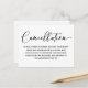 Modern simple black and white cancellation postcard. Design featuring calligraphy script ''cancellation'' and your message in trendy block lettering. Perfect to cancel, postpone, or reschedule your party or event.