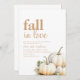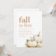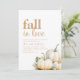 If you love neutrals, this simple style invitation is right for you. The invitation features an elegant design, with a soft, white-coloured background. In the centre, the party details are beautifully scripted in a beige text exuding an air of sophistication. Soft fall foliage with white pumpkins are on the right side. Welcome guests to your engagement party in style. Background colour and text is editable.