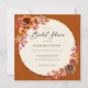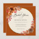 An elegant rustic, fall floral wreath bridal shower invitation that features watercolor poms, mums and red berries with a circle frame with delicate glitter (this is a digital effect, not real foil or glitter) on a terracotta background. Romantic and charming, it is a lovely choice for a backyard bridal shower, a barn bridal shower, an outdoor bridal shower, a garden or backyard bridal shower or any rustic setting.