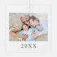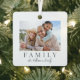 This simple and elegant boho-inspired square Christmas ornament is a beautiful way to celebrate family during the holidays. The design features space for one photo on the front and one photo on the back, making it a double-sided keepsake to showcase your favourite memories. "Family" is displayed underneath the front photo in a classic serif font, with room in soft script to add your family name, first names, or a short message.