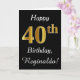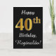 This simple birthday card design features the message "Happy 40th Birthday", with the "40th" having a faux gold-like appearance. It also features a custom name, and a black background. It could be given to somebody who is celebrating their fortieth birthday.