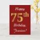 Simple Faux Gold 75th Birthday + Custom Name Card