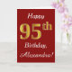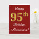 This simple birthday card design features the message "Happy 95th Birthday", with the "95th" having a faux gold-like appearance. It also features a personalised name, and a dark red background. It could be given to somebody who is celebrating their ninety fifth birthday.