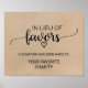 This simple faux kraft in lieu of favours sign is perfect for a rustic wedding. The minimalist design features an elegant brush script font and a lovely feminine heart on a faux kraft background. Personalise the sign with the name of your charity.