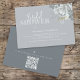 This design features watercolor floral foliage dusty blue, a QR code with map directions for online, bridal shower event, modern elegant calligraphy script font, simple elegant botanical greenery rose, modern simple minimalist typography font, fall winter summer spring style, romantic soft elegance simplistic, web address add your URL, the night before