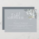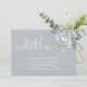 This design features watercolor floral foliage dusty blue, with a QR code gift registry online, website URL store register, modern elegant calligraphy script font, a simple elegant botanical greenery rose, modern simple minimalist typography font, fall winter summer spring style, romantic soft elegance simplistic, floral bridal shower invitations, a bridal shower with gift registry
