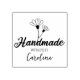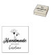 This simple "Handmade" rubber stamp features a flower with a custom script name.