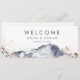 This simple floral mountain hanging seating chart welcome header is perfect for an outdoor wedding. The modern minimalist design features a navy blue watercolor mountain with blush pink moody fall wildflowers. The card prints on the front and back (double-sided). Please check the collection for the coordinating table number seating chart cards.