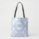 Simple Floral Navy Blue Monogram Mandala Pattern Tote Bag