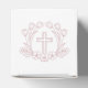 Simple Floral Pink Cross Baptism Cube Favour Box
