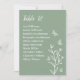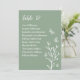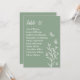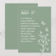 Unique simple seating chart card featuring romantic and elegant white flowers on sage green background