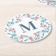 Simple Floral Wreath Monogram Round Paper Coaster