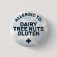 This medical badge features the slogan 'Allergic to: Dairy, Tree Nuts, Gluten' in a dark sans serif font. The background is a customizable photograph. You can edit the text to change the allergens as needed. A useful item for kids and adults with food sensitivities. ••• For more allergy accessories, visit my store Zazzle.com/Elder_Viality ••• For custom orders, message me on Zazzle
