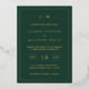 Simple Wedding Invitation featuring a modern yet elegant design with your two letter monogram at the top, a bold date layout and your details surrounded by a thin border. All design elements on the front are printed with real gold foil over a forest green background. A chic and stylish Wedding Invitation that is great for a minimalist couple.