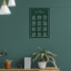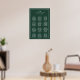 Simple wedding seating chart poster featuring a modern yet elegant design with your two letter monogram, names and date with the chart below, surrounded by a thin border. The template has three columns with twelve tables of eight guests as an example, but can be customised for your number of tables and guests. All text is in white over a forest green background and may be changed to any colour you wish in the design editing tool. A chic and stylish wedding seating chart design that is great for a minimalist couple.