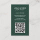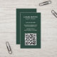 Modern vertical business card featuring a simple and minimalist style with your QR Code on the front and social media icons on the back. All design elements are in white over a forest green background. A plain and minimal design that can be customised for any business professional.