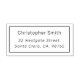 An elegant return address stamp with your name in simple sans serif typography followed by your address in italics. There is a chic, rectangular frame around the text. A minimalist design, ideal for personal or professional mail. Visit our store for more personalised address stamps.