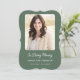 This simple modern memorial remembrance card with elegant white script on a calming sage green background can be given as a keepsake at a Celebration of Life or funeral service or sent as a special tribute to those who were unable to attend. Personalize this card with a favorite photo and your choice of prayer or poem on back of the card. Easy to customize.