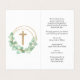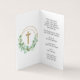 A photo and celebration of life on the front, the Lord's Prayer, or any prayer, on the back and details of the life of your loved one on the inside with an elegant eucalyptus wreath and gold cross. Beautiful to include at a funeral, memorial service, death anniversary or in thank you notes.