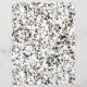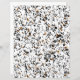 Classy, fun and contemporary scrapbook paper sheet with brown, grey, black and white terrazzo mosaic art pattern design on a white background.