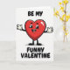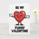 This design shows a glossy red heart character centered on a white background, outlined in thick black lines. The heart has big sparkling eyes with white highlights and a wide open smile that shows a small pink tongue. Two white-gloved hands reach out to the sides, like it’s offering a hug. At the top, the words “BE MY” appear in rounded black letters, and at the bottom it reads “FUNNY VALENTINE” in the same black lettering. The simple setup keeps your attention on the happy face and open-armed pose, which makes the message feel direct and kind. It’s a sweet choice for someone you adore, especially if you share jokes and like keeping things light ❤️. Send it to say “I like you a lot” while still making them smile 🥰, and enjoy sharing Valentine’s Day sentiments.