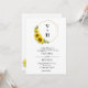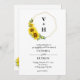 An elegant wedding invitation with a golden frame of cheerful sunflowers.