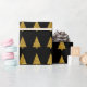 Christmas-themed pattern design of golden geometric pine trees on black background
