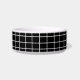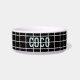 Modern geometric monochrome grid pattern with ice blue text customisable pet bowl, cute accessory. Ideal gift for the pet owner in your life, personalised with names in a black and white and pastel blue colour way